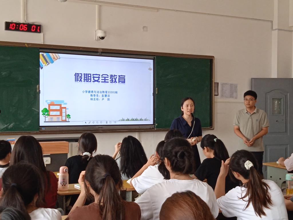 本站讯(机关第三党支部 卢凯)为认真贯彻落实习近平总书记关于安全生产重要论述,切实做好中秋节及国庆节期间学生安全教育工作,有效防范化解各类安全事故风险,9月28日,机关第三党支部联系小学道德与法治教育23301班开展安全教育活动。