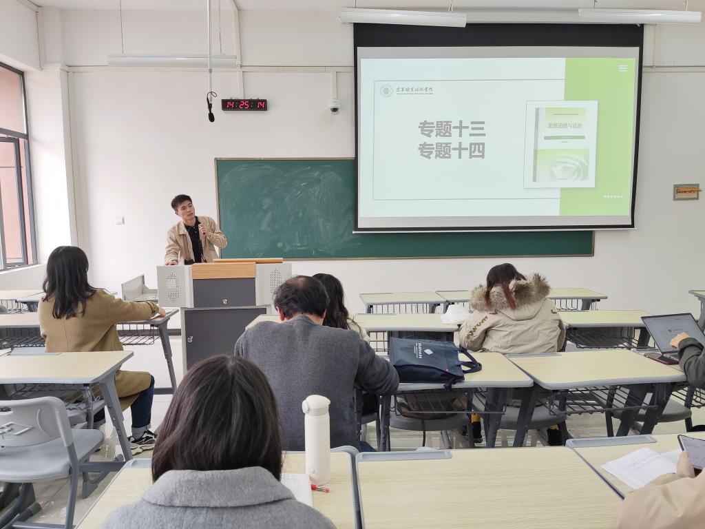 本站讯(马克思主义学院 张保揭)为进一步学习贯彻习近平总书记在江西考察时的讲话精神,提升《思想道德与法治》课程的授课质量和效果,更好的发挥思政课铸魂育人的主渠道作用,12月1日下午,马克思主义学院思想道德与法治教研室在日新楼B406教室召开集体备课会,由教研室主任胡金兰主持,全体授课教师参会。