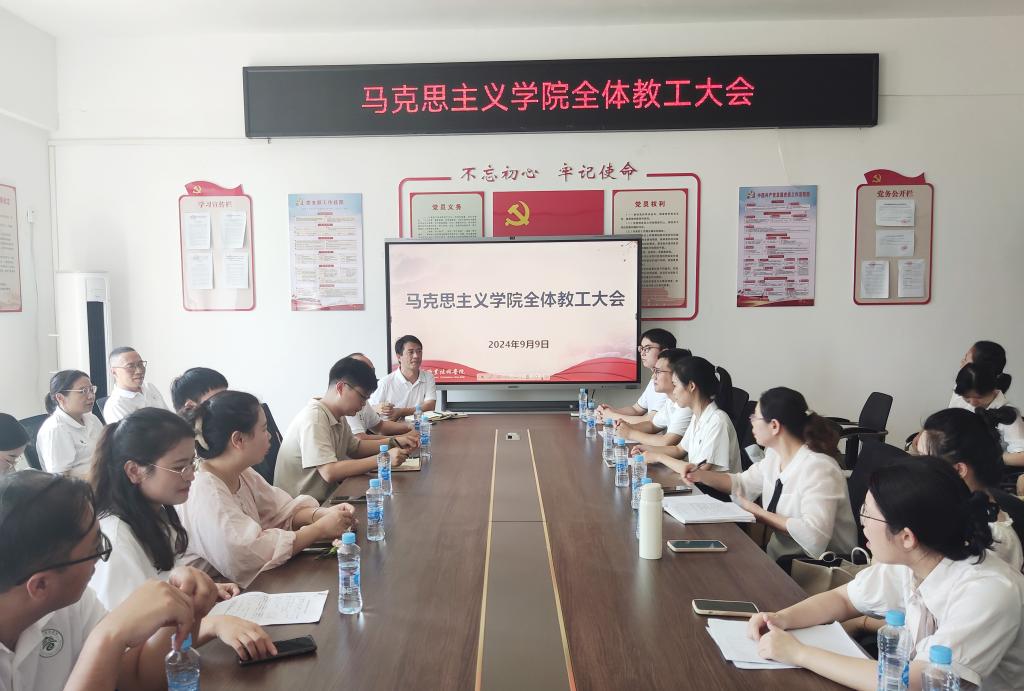 本站讯(马克思主义学院 陈牡丹)为落实新学期各项工作,9月9日上午,马克思主义学院在日新楼C402召开全体教师大会。会议由院长钱爱文主持,全体教师参加。