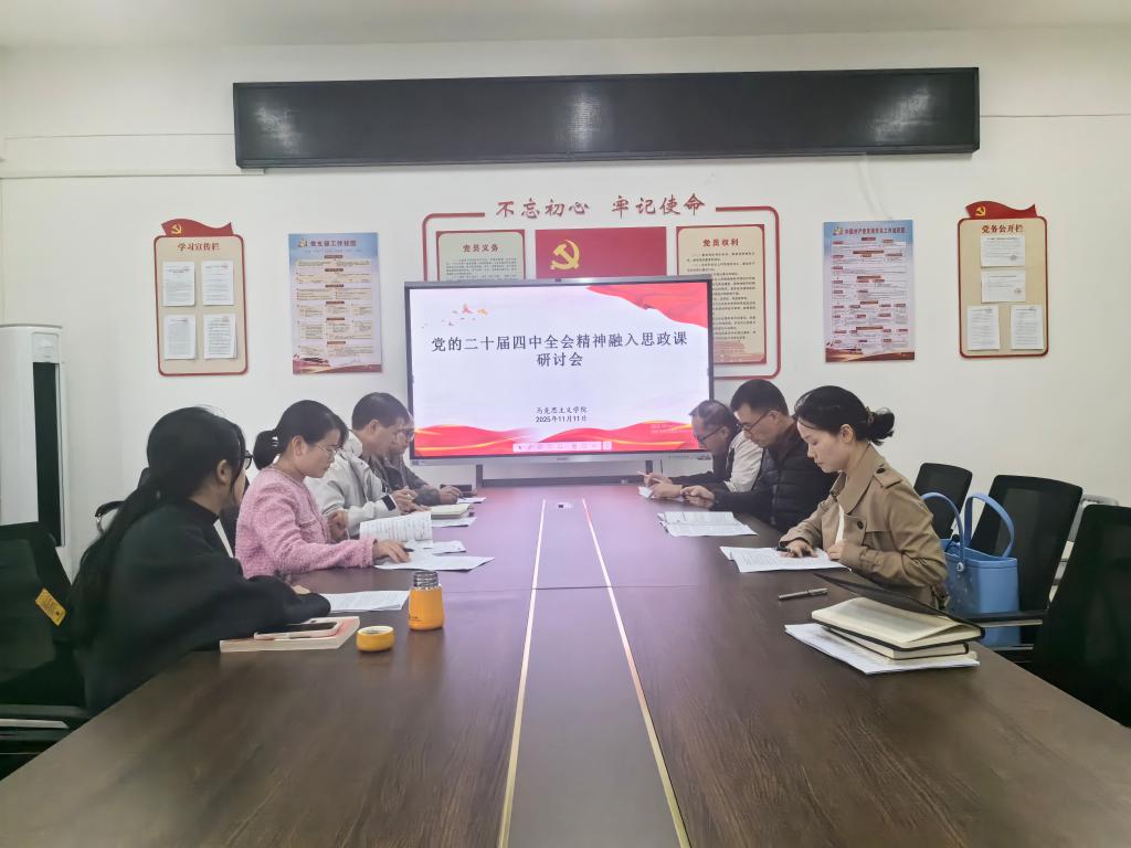 本站讯(马克思主义学院 卢凯)为深入学习贯彻党的二十届四中全会精神,切实提升思想政治理论课的教学质量与育人实效,11月11日,马克思主义学院在日新楼C402举行“党的二十届四中全会精神融入思政课”研讨会,教研室主任及部分老师参加研讨,会议由马克思主义学院院长钱爱文主持。