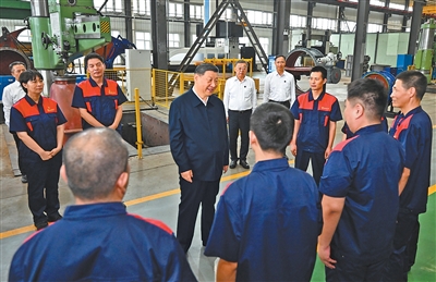 7月7日至8日,中共中央总书记、国家主席、中央军委主席习近平在山西考察。这是7日下午,习近平在阳泉阀门股份有限公司考察时,同企业员工亲切交流。
