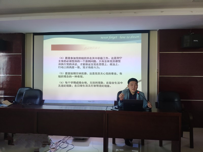最后,他鼓励各位同学严格要求自己,积极上进,尽快从思想上、行动上向党组织靠拢。并希望各位班长和团支书及时将入党要求及流程传达给班级同学。