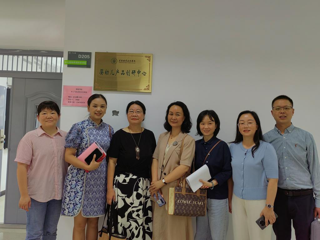 会后,大家一同参观了师范学院相关实训室,为婴幼儿产品创研中心挂牌,并合影留念。