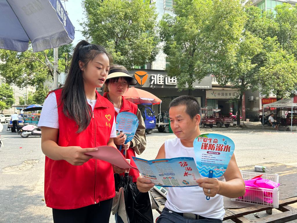 活动过程中,师生志愿者们分成三批进行志愿服务。部分志愿者在袁州区彬江镇新时代文明实践开展清洁工作,整理阅读室书籍,打扫卫生至窗明几净。部分志愿者在彬江镇实践中心邹静书记的带领下上街走访并分发传单,进行防溺水安全教育、防诈骗安全教育,他们采用一对一深入浅出的讲解方式,帮助当地居民牢固树立安全意识。部分志愿者弯腰捡起草丛中的垃圾、烟头,积极主动作为,巩固“创建卫生城市”成果,为全面提升城市品质贡献自己的力量。