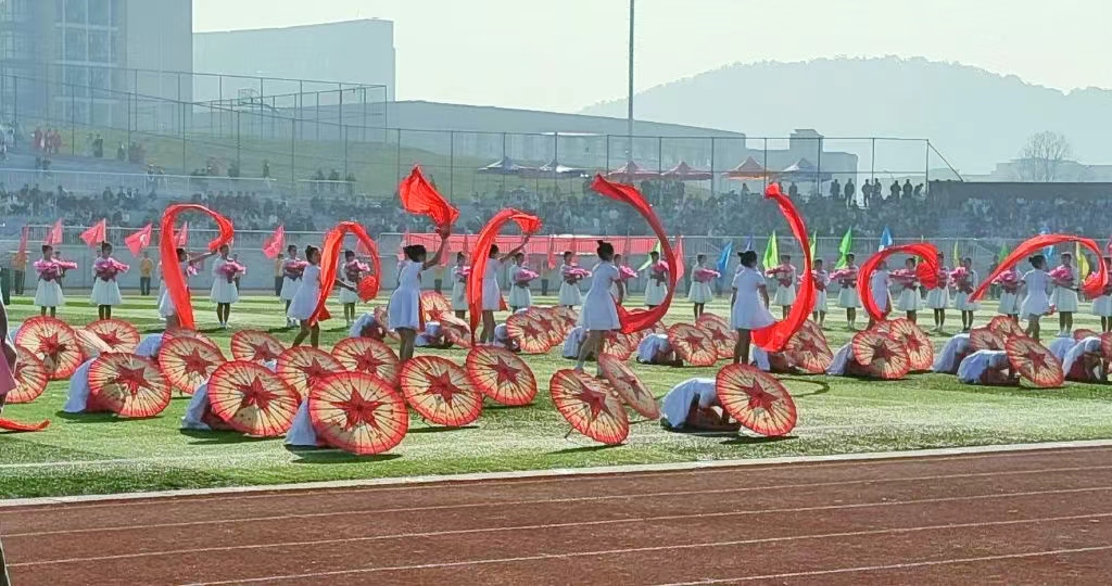 国旗飒沓,恰如火炬,国歌嘹亮,凯歌雄壮,庄严的升旗仪式后,本次运动会开幕式正式开始。师范学院方阵代表队由院党总支书记邹晓英和院长肖勇带队,同学们手执红色油纸伞紧随其后,昂首阔步向主席台走去。一把把红色油纸伞充分展现了我院学子“炽热骄阳,顽强拼搏”的精神风貌!