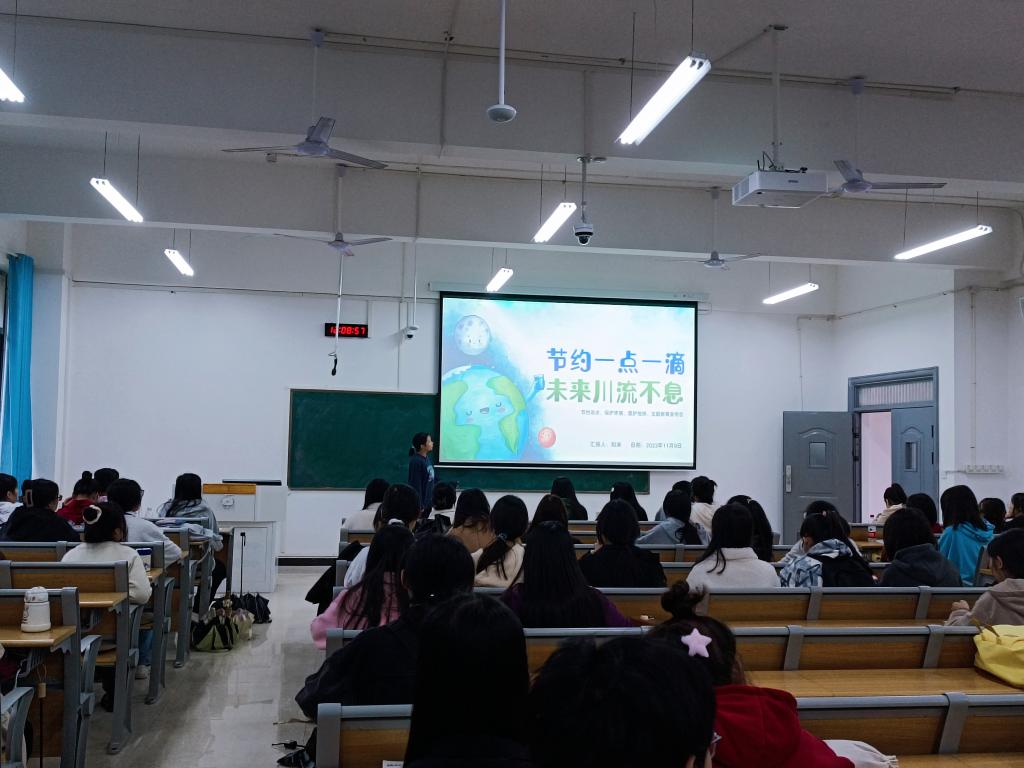 本站讯(师范学院 周思昀 学生记者和淋)为号召大家树立爱水节水理念,共同保护水资源,11月9日中午,师范学院在正心楼D109开展“节约一点一滴,未来川流不息”主题宣讲活动,学生代表共100余人参加,兼职团总支副书记和淋担任本次活动主持人。
