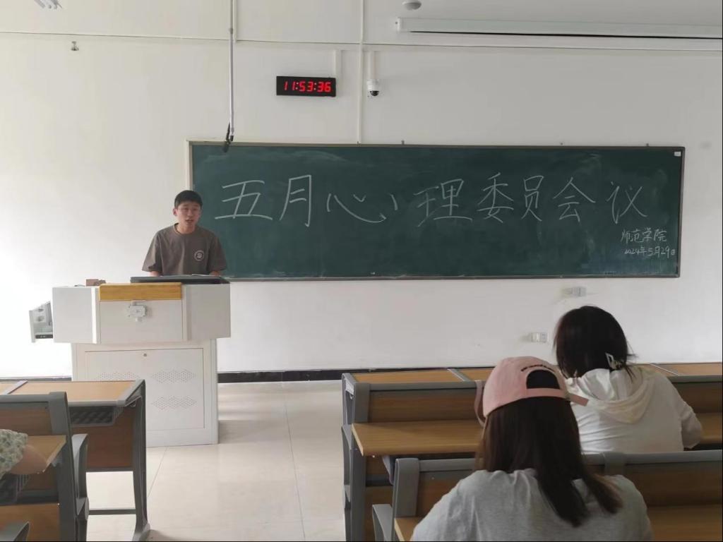本站讯(师范学院 吴滨欣)为进一步推进心理健康月活动,529日中午,师范学院在正心楼D209教室召开五月份全院心理委员会议。本次会议由辅导吴滨欣主持,院心理委员共计80余人参加会议。
