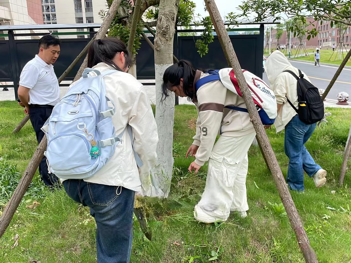 本次行动主要以清理室外草坪的枯枝杂草、白色垃圾与建筑垃圾为主。师生们手持剪刀,修剪着高挺的杂草,清理着垃圾。经过一番辛勤的劳作,原本杂草丛生的草地变得整洁而有序,校园环境焕然一新,散发着清新与美好。