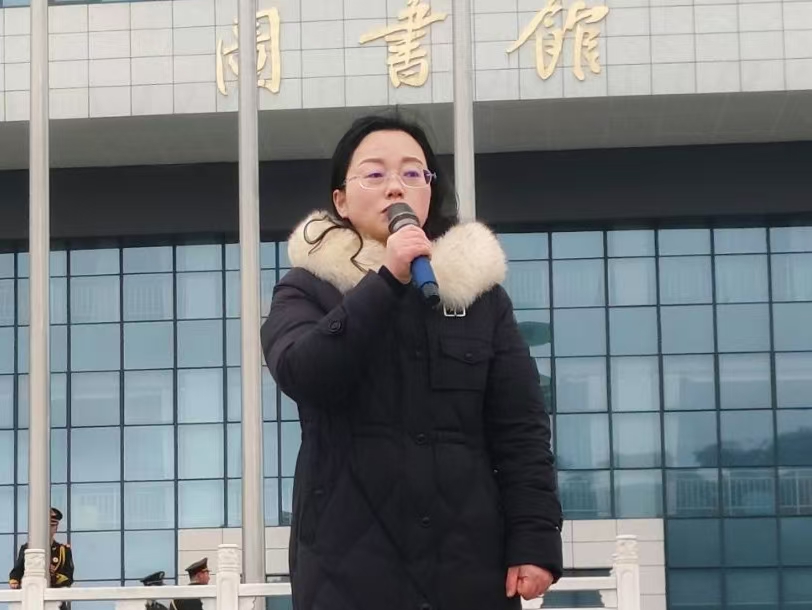 国旗护卫队步履铿锵,护卫着国旗迈向升旗台。《义勇军进行曲》的旋律穿透雾霭,师生们庄严肃立,齐声高唱,鲜艳的五星红旗在注目礼中冉冉升起。升旗礼毕,邹晓英发表讲话,告诫广大学子要有危机忧患意识,不忘初心、牢记使命,践育人师道,做民族复兴的接力者。