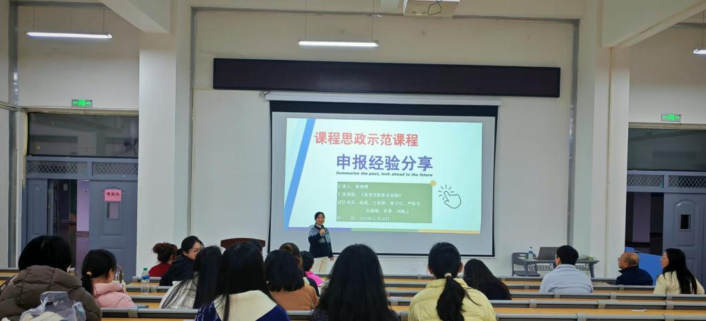 本报讯(师范学院 刘娟芬)为深入推进课程思政建设,赋能青年教师专业成长,助力校级课程思政示范课程申报工作提质增效,12月16日下午,师范学院在正心楼A108教室举办2025年度课程思政示范课程申报经验分享会。师范学院《英语交际职业技能》《学前儿童社会教育》两门校级课程思政示范课程负责人陈艳辉、尹欣老师作专题分享,学院40岁以下青年教师一起共学共研、交流共进。