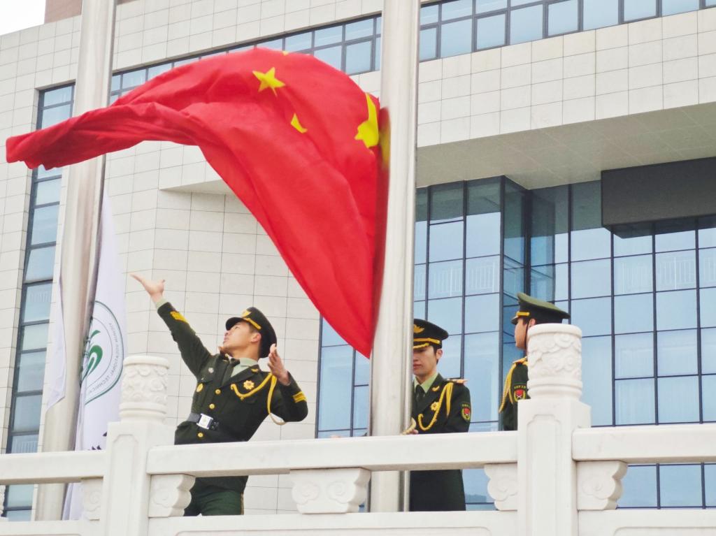 在全体师生的注目礼下,五星红旗伴随着国歌冉冉升起。院党总支书记邹晓英作国旗下的讲话,号召广大学子争做有信仰、有担当的新时代青年,把自己的人生梦想同国家的命脉发展紧密结合,为中华民族的伟大复兴挥洒青春与汗水。学生代表邹娇在发言中表示,将不忘初心,树立远大理想,以实际行动践行“青春奋进报国行”的承诺。
