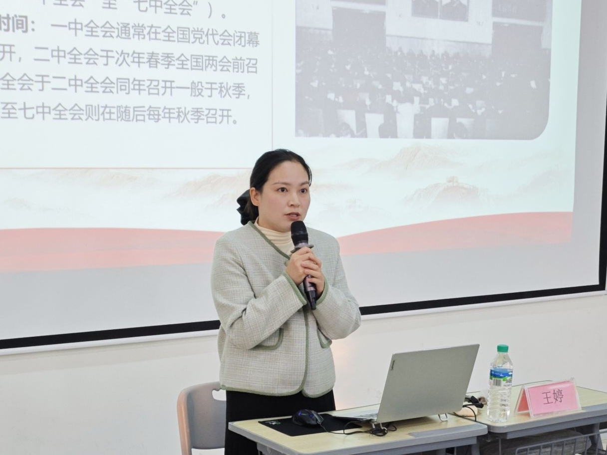 本站讯(师范学院 王焕 学生记者 龚洋涵 黄建晔)为深入学习贯彻党的二十届四中全会精神,引导广大青年学生深刻把握国家发展大势与时代责任,12月5日下午,师范学院在正心楼A108教室开展党的二十届四中全会精神学习宣讲活动。学院辅导员、青年五四奖章获得者王婷担任主讲。来自各班级的300名学生共同参加学习。