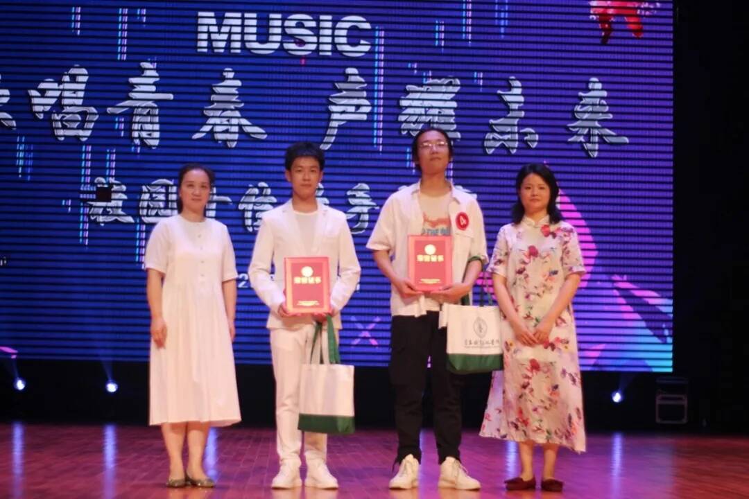 本站讯(团委 梅应轩 杨雨 施旸 学生记者 邓文燕 南灿)为丰富学生校园生活,提供一个展现青春魅力与活力的舞台,5月30日下午,“歌唱青春•声耀未来”校园十佳歌手大赛于出彩大会堂举行,艺术与设计学院副院长、声乐副教授付菲,艺术与设计学院声乐与合唱指挥教师陈菁,师范学院声乐教师杜文慧,宜春市音乐家协会会员、师范学院音乐教研室主任胡忻忻,英国上市公司365声乐讲师曹侃,艺术与设计学院辅导员雷斯羽担任本次大赛评委,校学生会、校社团工作部、各二级学院代表共50位大众评委参与比赛评分,来自各二级学院共1000余名学生代表共同观看了此次比赛,校广播李铭阳、朱秀君担任主持人。经过前期的层层选拔,脱颖而出的来自各二级学院的14名选手在舞台上尽情展示着自己的才华,简单明快的曲调,不同的唱法,不同的风格,创造出一幅幅声色兼美的靓丽风景,诠释了青春飞扬的真正涵义。整个比赛过程气氛热烈,掌声和喝彩声经久不息。 比赛结束后的猜歌名小游戏将现场气氛再一次推向高潮。经过激烈的角逐,师范学院陈辉带来的《Simon》荣获大赛一等奖及最佳台风奖;艺术与设计学院蔡志銮和付睿骞演唱的《Simon》和《身骑白马》荣获大赛二等奖。师范学院杨菲、卢锦组合演唱的《是妈妈是女儿》、信息工程学院王一臣带来的《爱我还是爱他》、师范学院何广带来的《天外来物》荣获大赛三等奖,其中,《天外来物》荣获大赛最佳人气奖,艺术与设计学院龙陈忠《敢问路在何方》荣获大赛最佳潜力奖。评委老师分别为获奖选手颁奖。