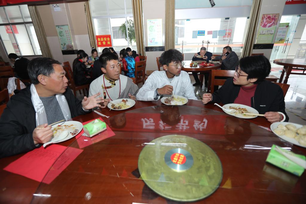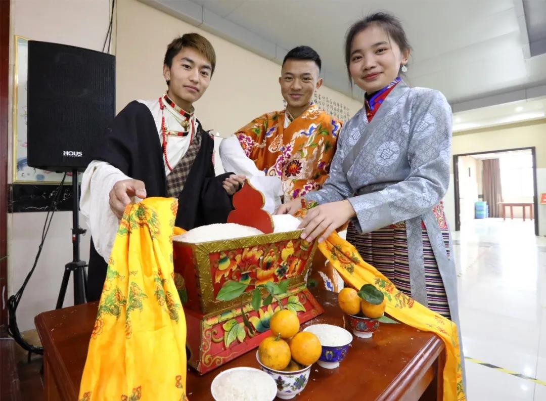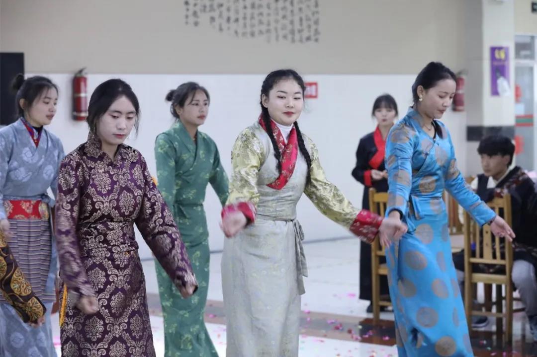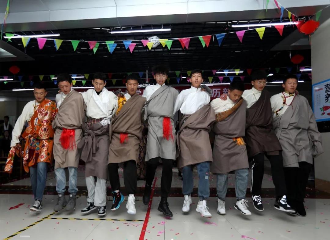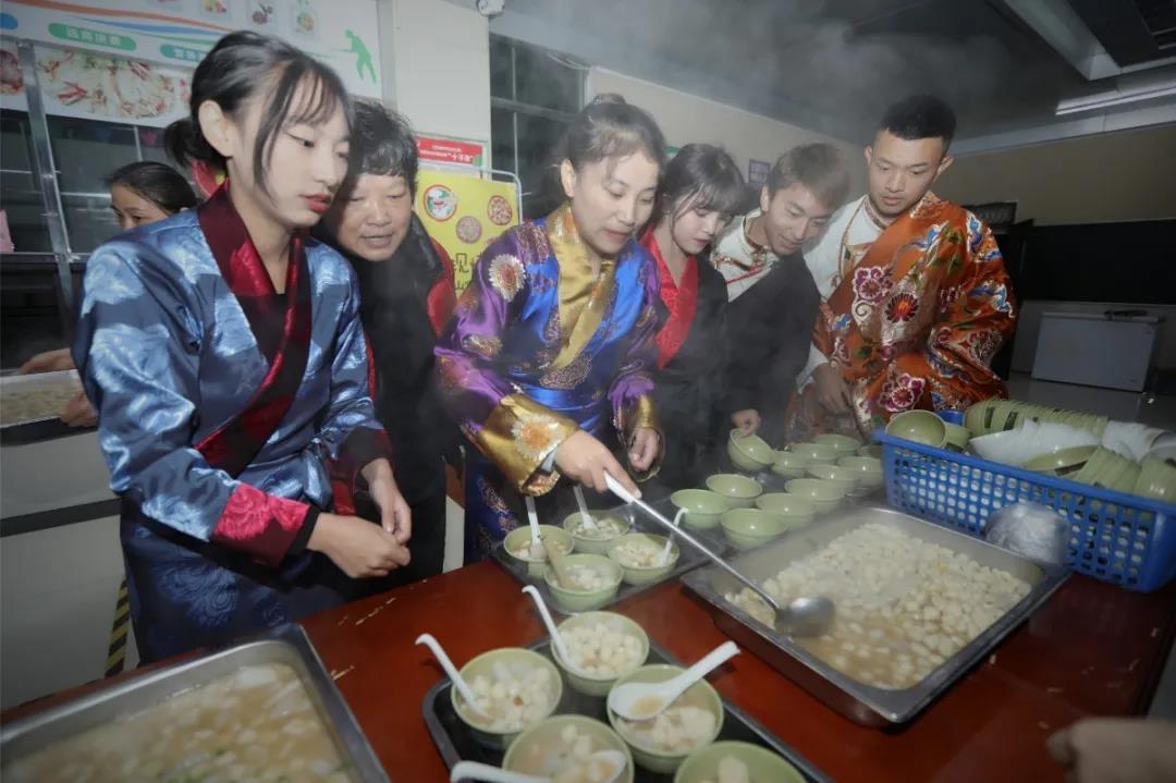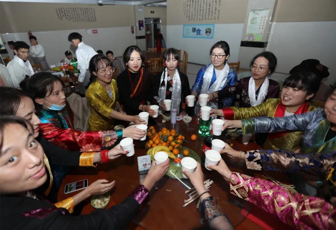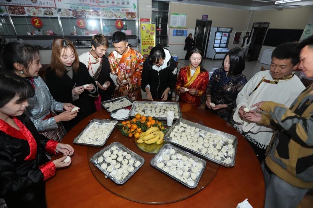 期间,藏族同学们给领导和老师们献上寄托着美好祝愿的哈达,还端上了他们精心制作的古突和藏包子,以示除旧迎新。