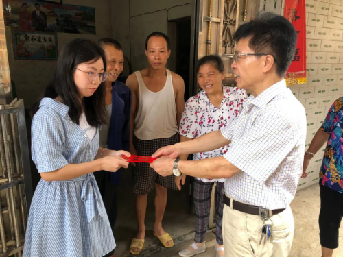 临走时,刘思瑶的爷爷奶奶想要挽留杨校长一行人在家中吃饭,在得知杨校长一会还有别的事情要忙之后,刘思瑶奶奶动情地说,“非常感谢学校,感谢校长对我们孩子的照顾,下次有空再来家里,一定要留下吃顿饭啊!”杨校长欣然答应,并嘱咐刘思瑶要好好学习,早日独立自强,为家里分担。(摄影 欧阳富萍)