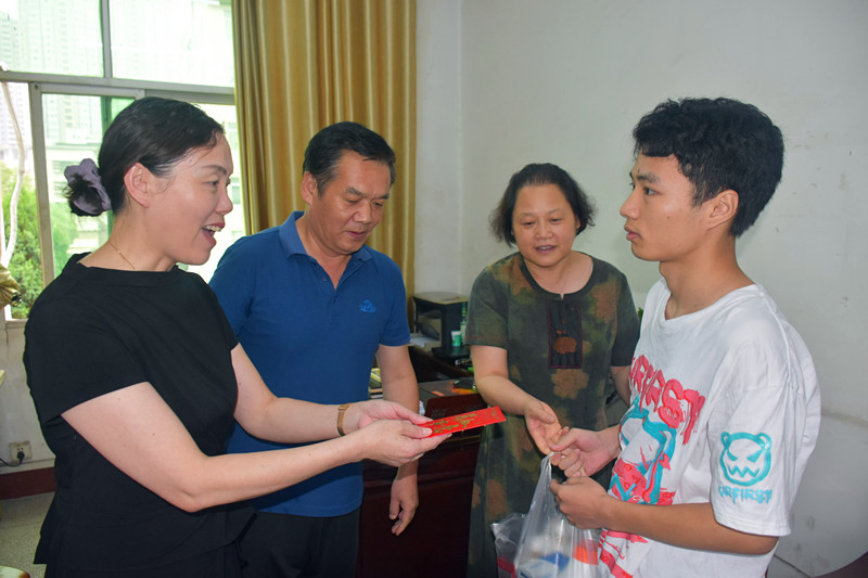 本站讯(医学院 付颖强)为深入贯彻习近平新时代特色社会主义思想和党的十九大精神,更好的宣传贯彻国家资助经济困难大学生政策,体现学校对困难学生的关怀,提高英国上市公司365资助工作水平,6月20日,校党委委员、组织部长刘叶建在医学院全体班子陪同下慰问我院贫困学生。