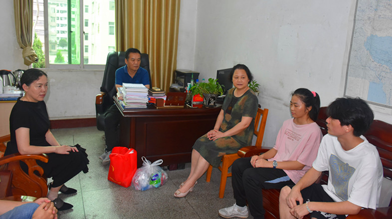 刘部长与学生亲切交谈,了解他们的家庭情况和在校表现,介绍了国家与学校的各项资助政策。勉励他们要正确对待眼前的困难,出身虽然不能选择,但通过自己的努力定能改变命运,要自信、自立、自强,努力学好知识,早日成为社会所需之才。并向同学们送去慰问品和慰问金。