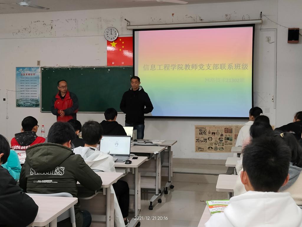 (本站讯 袁琦)为深入开展党史学习教育“我为群众办实事”实践活动,切实推进学院内涵建设,解决学生专业学习上的疑难问题。12月21日晚,信息工程学院教师党支部与网络技术21302班开展专业知识答疑的联系班级活动。