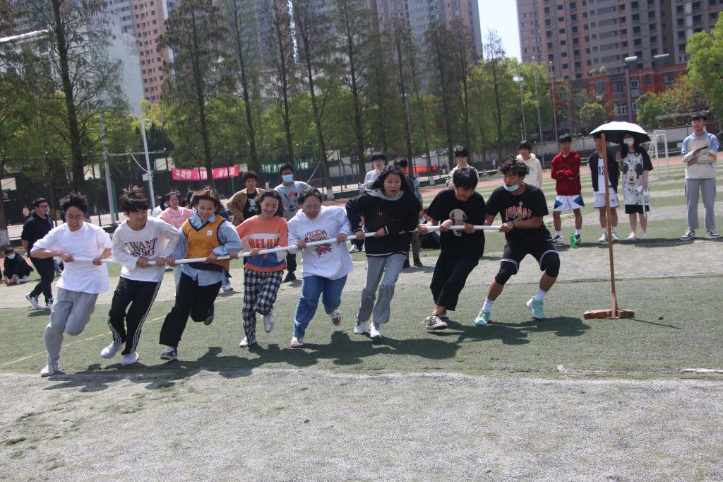 此次活动以“疯狂大转盘”形式开展。班级队伍以8人为一组,赛前各位选手们在起跑线上蓄势待发,听到“开始”号令之后,争先恐后向前跑,在旋转绕过障碍竿过程中,团队成员们展现出优秀的身体控制力和团队配合力。场下同学们齐声为场上的参赛选手加油鼓劲,运动场上被欢笑声和加油助威声所包围。