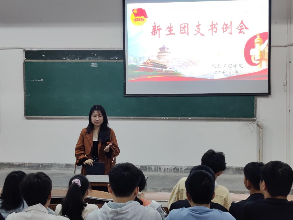 本站讯(信息工程学院 刘嘉妮 学生记者 易可玉)为让新生团支书了解掌握更多的团知识,增强他们的对团的正确认识,10月12日晚,信息工程学院在信息楼三楼阶梯教室召开2021级新生团支书例会。
