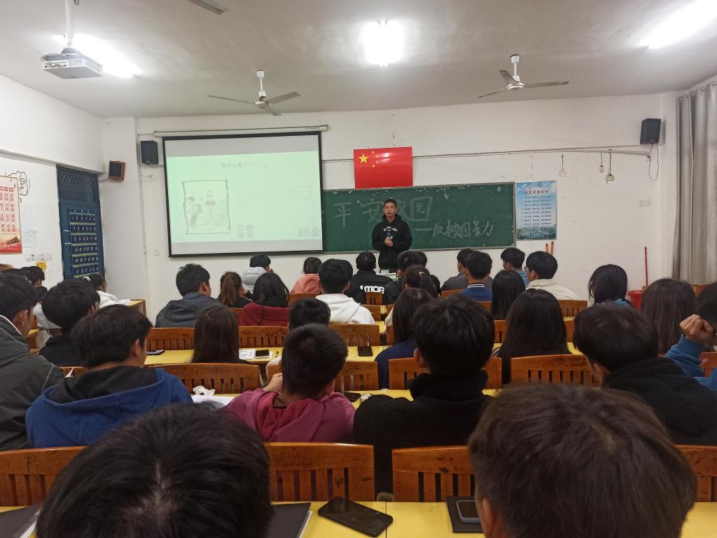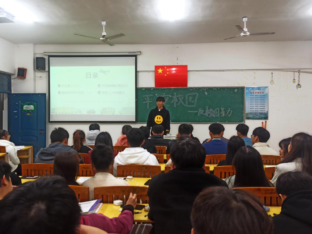 活动中,团支书围绕校园欺凌的含义、特点、表现形式、危害后果以及预防和发生后的应对方法等方面展开详细的论述宣讲。让全班同学树立正确的法律意识,敲醒警钟,杜绝侥幸心理,坚决向校园暴力说不。活动最后通过提问的方式进一步加深了同学们对校园欺凌的认识。