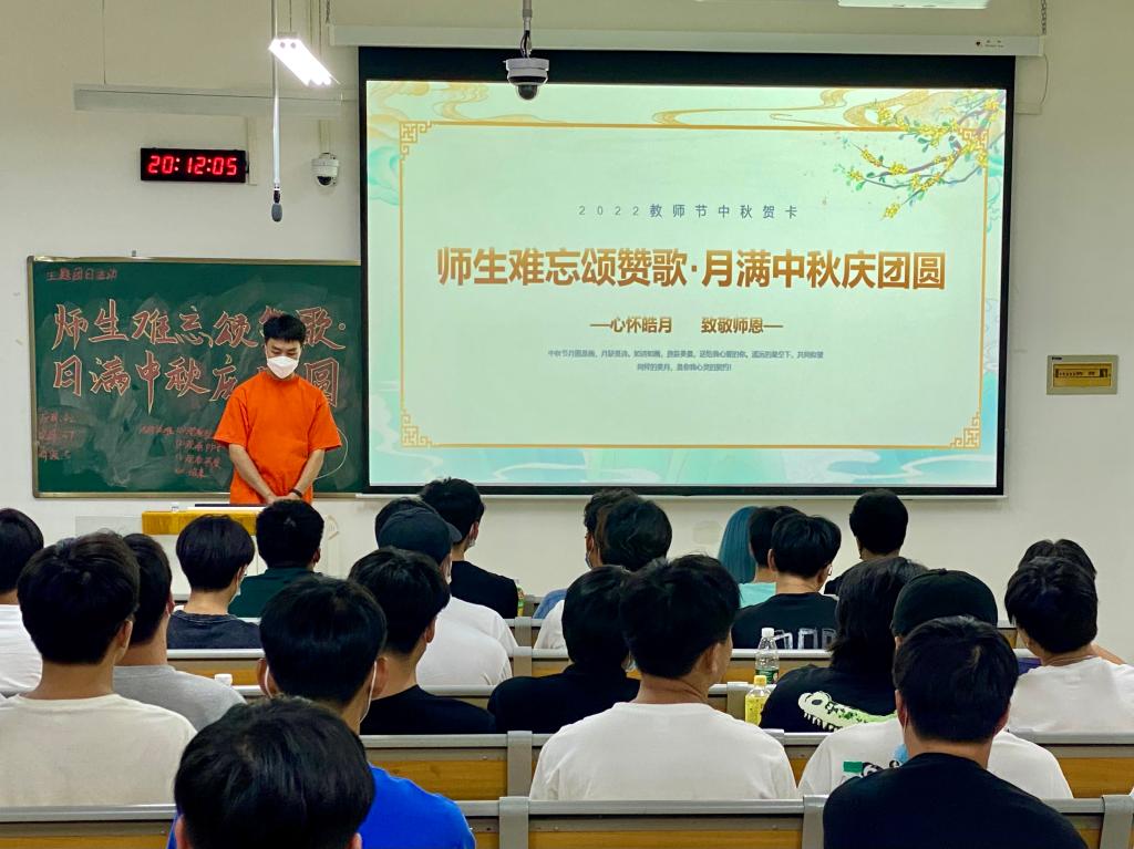 活动伊始,各班在团支书的认真筹备中,分别采取线上线下的形式积极开展,内容丰富,组织大家观看《我们的故事》学习专题后,采用知识竞赛、诗歌朗诵、情景表演等多种文化增强节日文化理念,弘扬创新节日文化,了解尊师重教的故事使学生备受教益,同时,营造庆祝教师节、中秋节的浓郁气氛,让节日真正给班级同学带来快乐与幸福。