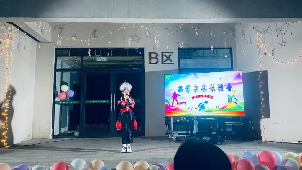 coco Elva Tia校街舞社给同学们带来开场舞《pink venom》点燃全场。接着,选手们怀揣着激情与梦想依次展示,有的双人精彩对唱,有的怀抱吉他展示琴技,期间还穿插了听歌识曲游戏,全场气氛高涨之后,新生代表苗族姑娘余琼梅给大家展示一段民族舞蹈,引得全场阵阵喝彩。最后,陈小保对学生会工作人员的辛勤付出表示由衷感谢,对参赛选手的精彩表演表示充分肯定。