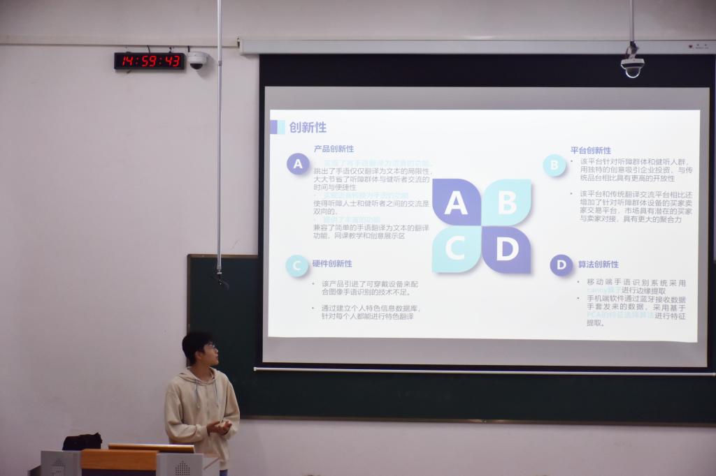 本次比赛共有29个项目团队参加,每组选手通过“路演”的形式用精炼的语言向大家讲解项目规划、市场调研以及产品创新等方面的项目成果,以自信饱满的精神状态介绍项目的特色与优势。评委老师就项目的创新性、商业性、可持续性等方面进行点评,并针对性的对项目的市场前景、社会效益和落地的可行性等方面提出宝贵的建议,提供更加明确的方向。