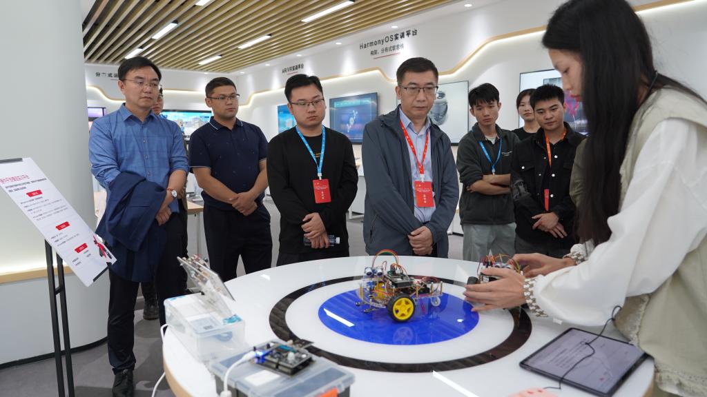 校友们一起到智云楼前合影留念,党总支书记罗来曦带校友参观了“华为开发者创新中心”展厅和“林庆平XR数字孪生大师工作室”,和校友们一起感受信息技术的更新迭代、学院发展的蒸蒸日上。