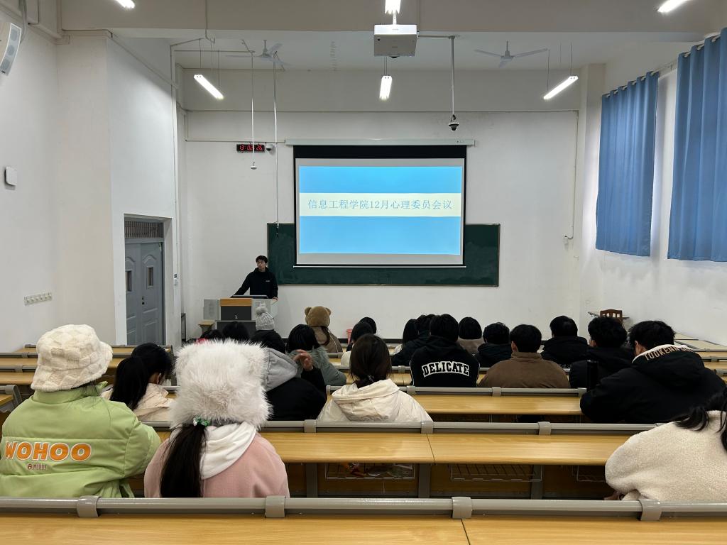 本站讯(信息工程学院 张为岷)为总结心理工作经验,加强心理委员队伍建设,进一步提升学院心理健康工作水平,12月20日,信息工程学院组织各班心理委员召开12月心理健康会议,会议由辅导员张为岷主持。