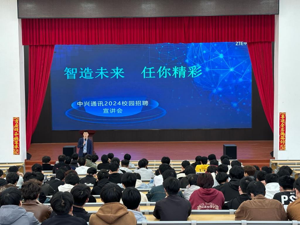 本站讯(信息工程学院 袁勋)为了引导学生树立正确的就业观念,充分激发他们的热情和主动性,切实提高毕业生的就业质量,3月28日下午,信息工程学院在和济楼 C126 阶梯教室成功举办了中兴通讯 2024 届就业宣讲会。