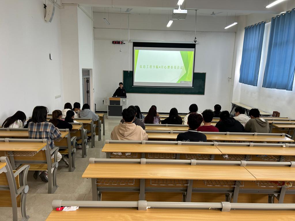 本站讯(信息工程学院 张为岷)为进一步加强学生心理健康工作,提高心理委员的专业素养和工作能力,4月10日,信息工程学院在智云楼B102召开四月心理委员会议,会议由辅导员张为岷主持。