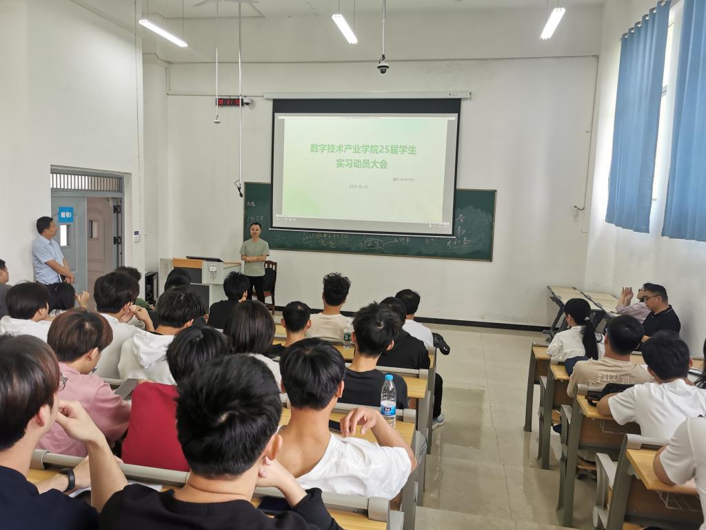 本站讯(信息工程学院 谢小欣)5月15日上午,信息工程学院数字技术产业学院2025届学生实习动员大会在智云楼一楼阶梯教室隆重举行。信息工程学院党总支书记罗来曦、国信蓝桥就业部负责人龚焱、国信蓝桥校区负责人邹冬平、国信蓝桥校区就业老师邬云、方和平以及信息工程学院2025届全体学生参加了此次大会。