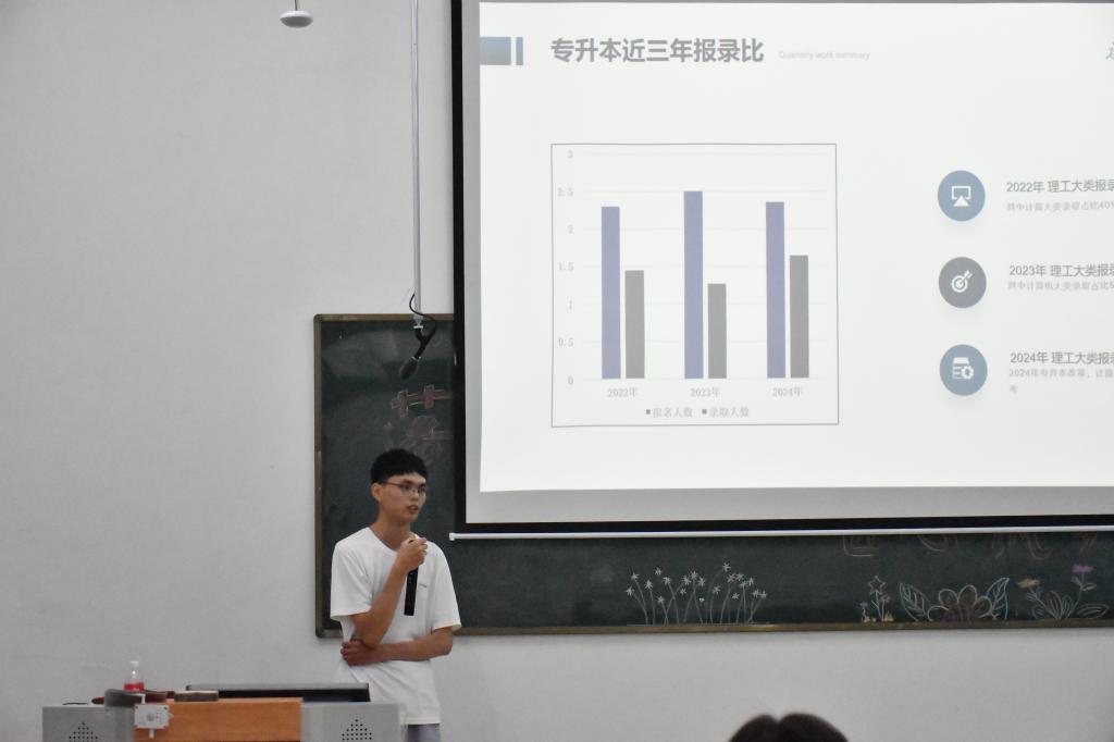 易皓明结合自身学习、工作经历,围绕职业规划、就业选择、面试技巧和个人提升等方面与在校生进行了分享,鼓励学弟学妹们在大学期间要积极参加学校的各项活动,不断累积学习经验,磨炼专业技能,提高自身综合素质。他结合自己专升本学习经历,从备考心态的调试、目标学校的选择、学习时间的分配等几个方面进行了分享,提醒同学们处理好实习和备考的时间安排,摆正心态,克服懒惰心理,正视自己的升学需求,踏实学习。