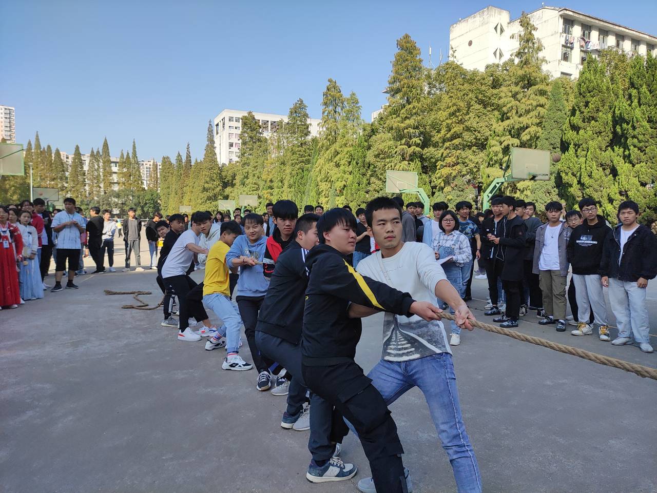 本次拔河比赛让更多学生明白了团队分工与合作、组织纪律严明的重要性,领悟了任何人的成功都离不开顽强拼搏的精神、乐观积极的心态、团结一心的面貌。