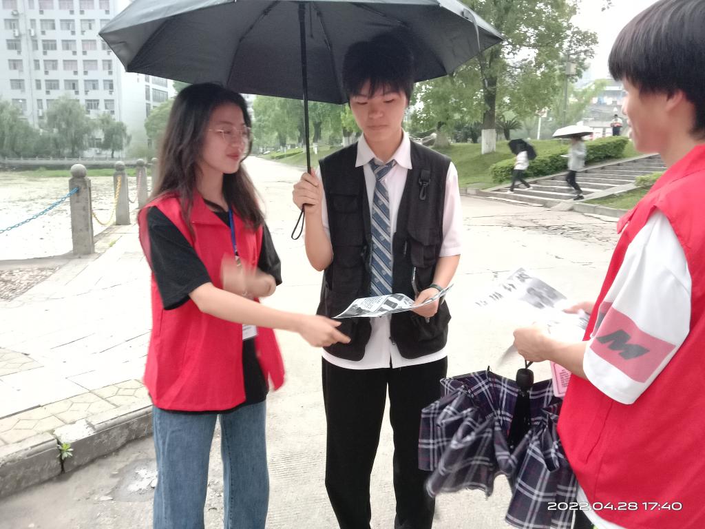 响应国家安全中的公共卫生安全,宣传垃圾分类知识,本次活动中志愿者们提前到达了活动地点,通过垃圾分类知识宣讲,分发宣传单等方式,宣传垃圾分类的相应知识,为创建文明校园献出一份力量。
