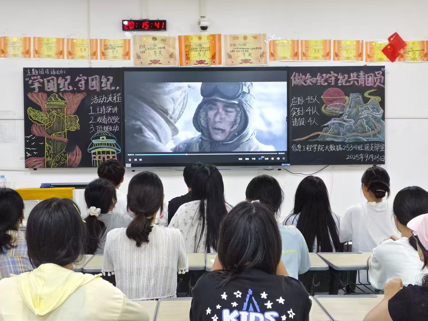本站讯(信息工程学院 易文意 学生记者 丁菲)为深入推进爱国主义教育,引导新生赓续红色血脉、汲取奋进力量,9月25日,信息工程学院党总支组织25级新生班级观看红色主题影片《长津湖之水门桥》。