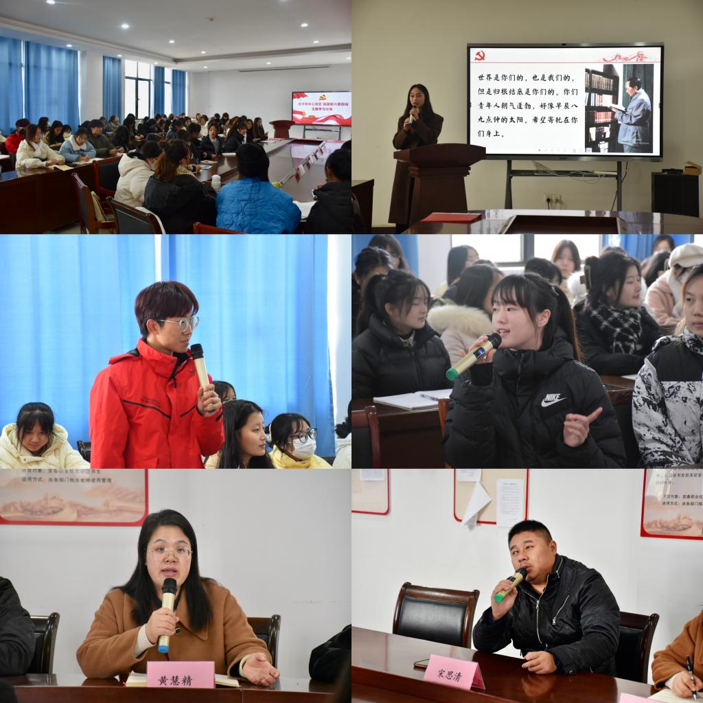 本次活动分为三个阶段。在第一阶段,大家共同学习习近平总书记考察江西的重要讲话。随后由李文清分享11月在井冈山参加江西省青年马克思主义培训的实践心得,讲述自己两次在井冈山学习的经历,激励同学们坚定理想信念,脚踏实地,不断超越自我。第二阶段,同学们将自己在学习、生活及成长上遇到的困惑进行提问,宋思清认真解答,鼓励同学们打好学习基础,认真耕耘,为国家、为人民、为自己不懈奋斗。第三阶段,由检验专业国赛获奖选手分享自己的参赛心得,同学们自发进行交流,热烈的活动气氛感染在场所有人,让大家感受到奋斗和热爱的力量。黄慧精对同学们提出殷切期望,人生如航海,重点是要享受航海的过程,要努力成为更优秀的自己。