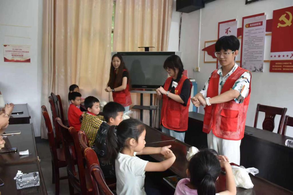 实践队成员走进支部文史馆、红史馆、脱贫攻坚馆,感受红色文化的浸润,使成员们更好传承红色基因,从党史里汲取力量,让青春在党和人民最需要的地方绽放。支教小课堂上,实践队成员们发挥自身专业知识带领孩子们学习七步洗手法,通过学习七步洗手法对于个人卫生习惯有了新的认知和防护方法。