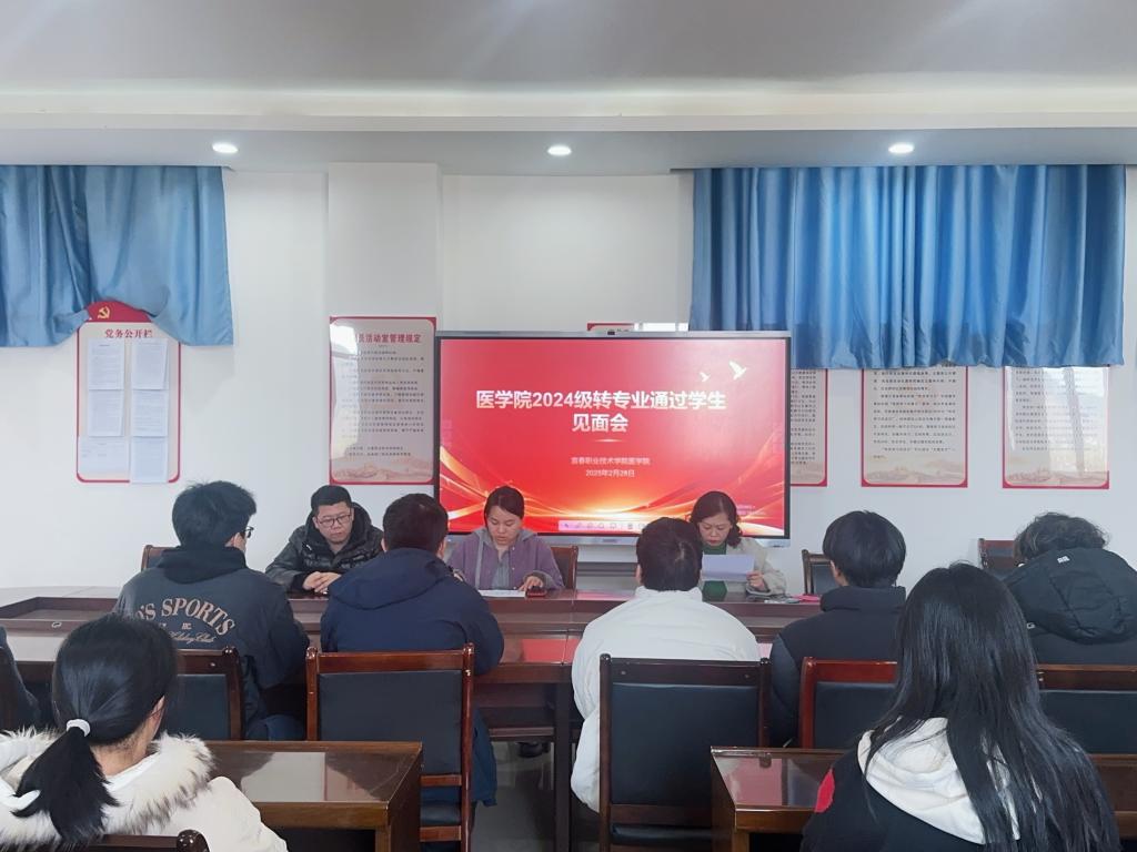 2月28日,医学院(附属医院)在仁济楼A405举行2024级转专业通过学生见面会。此次见面会旨在帮助转专业学生尽快熟悉新专业、融入新环境,为他们提供全面的指导与支持。院党总支副书记李莫娴、副院长周围、学工干事李灿及33名通过转专业的学生参加会议。会议由李莫娴主持。