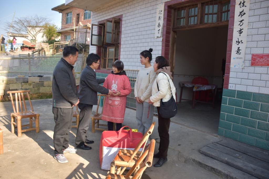 寒冬腊月,新春将至。为贯彻落实国家教育扶贫政策,深入宣传党和国家的学生资助政策,准确掌握困难学生家庭情况,2021年1月19日,校党委副书记、校长杨云山与医学院院长刘敏、医学院党总支书记舒文送医学院建档立卡户学生吴同学回家,并代表学校向学生家庭送去新春佳节的祝福,向他们赠送了节日慰问金和慰问品。