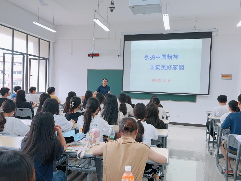 为深入学习习近平总书记关于“大思政课”建设的重要指示精神,贯彻《关于新时代加强和改进思想政治工作的意见》,落实立德树人根本任务。6月16日下午,医学院(附属医院)刘敏教授给22级临床专业学生带来了一堂既深刻又生动的思政课——《弘扬中国精神 共筑美好家园》,课堂气氛热烈,掌声阵阵。