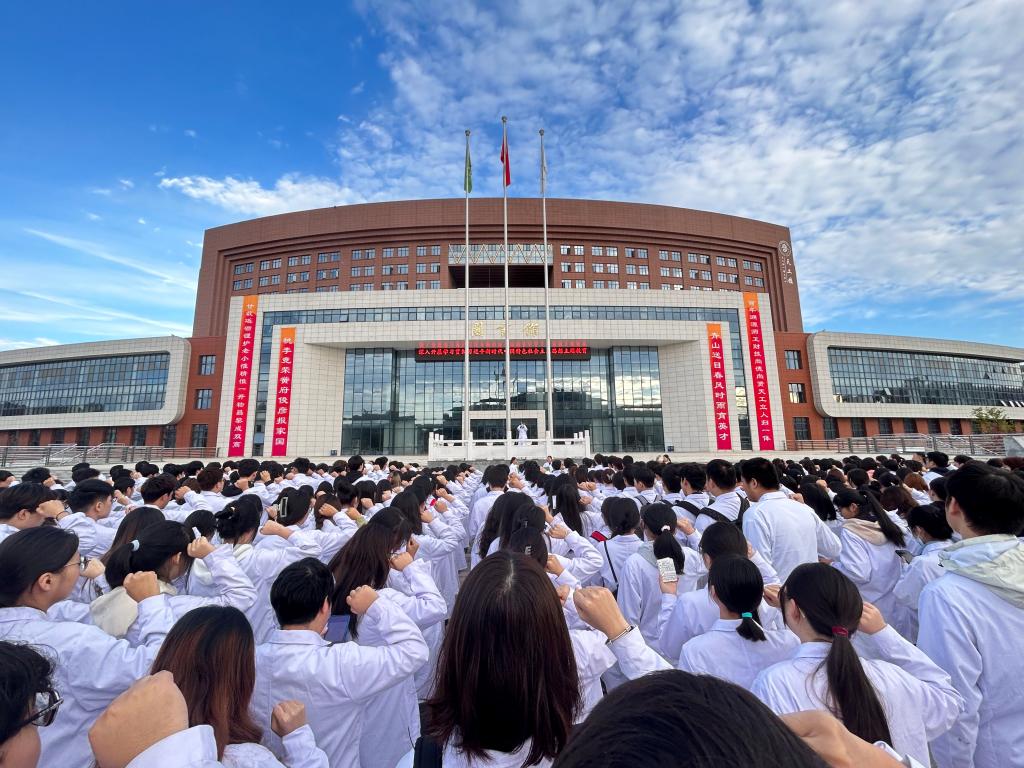 随后,全院师生举行医学生宣誓仪式,身着白衣的同学们在领誓人的带领下,庄严地举起右手,郑重地宣读医学生誓词。他们用铿锵有力的声音表达了对医学事业的热爱与执着,承诺将竭尽全力维护人类的健康与福祉。