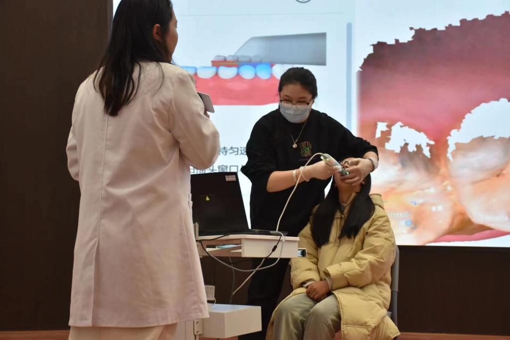 活动中,口腔医生张涛向同学们介绍口腔健康的重要性,常见牙周疾病及治疗方法,朱柯杰医生向大家讲解牙齿不齐带来的问题和危害,并邀请同学们上台体验口腔扫描仪,让大家更直观地了解口腔健康。随后,口腔科医生通过一系列趣味横生的互动环节,让同学们亲身感受口腔健康知识的重要性。讲座最后,主持人对本次活动进行总结,他表示口腔健康对每个人的生活至关重要,希望同学们能够重视口腔保健,养成良好的口腔卫生习惯。