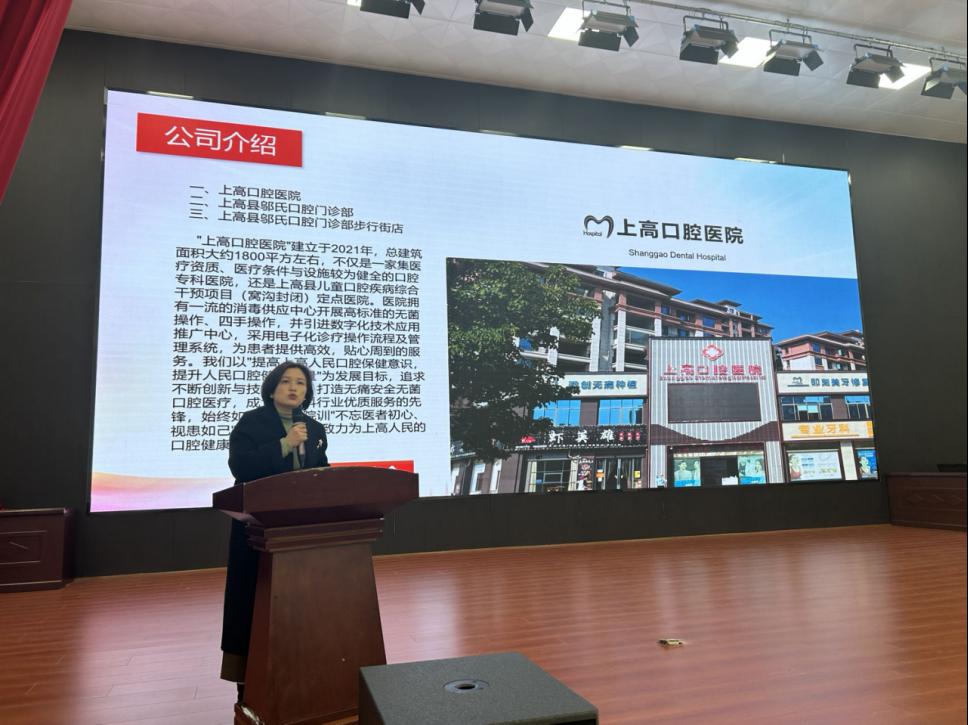 在签约仪式之前,各口腔医院负责人通过播放企业宣传片和PPT讲解方式从企业文化、岗位需求、企业环境以及人才培养等方面进行实习就业宣讲,为同学们了解企业打开窗口,同学们也针对公司发展平台、人才需求等问题积极提问,与企业代表进行了深入的交流。宣讲会上场面热烈,掌声不断。