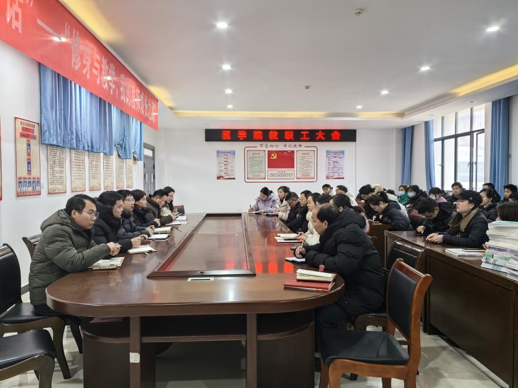 为进一步做好新学期各项工作,增强全体教职工的凝聚力,2月26日,医学院在仁济楼A405召开新学期教职工大会。会议由院长潘锋钢主持,全体教职工参会。