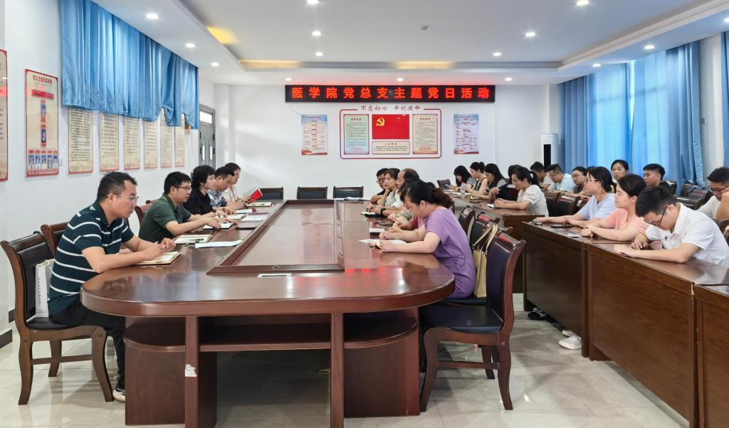 为深入学习贯彻党的二十届三中全会精神,进一步增强党组织凝聚力、战斗力,8月28日,医学院党总支开展8月主题党日活动。活动由党总支书记王晔主持,全体党员参加。
