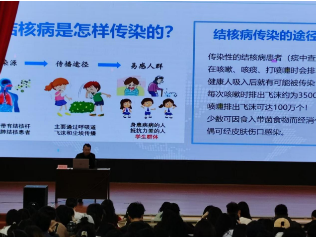 本次活动采用"三位一体"的立体化宣传模式,分阶段扎实推进:第一阶段,医学院附属医院在仁济楼小礼堂举办结核病防控专题讲座,系统讲解结核病流行现状、防控策略及诊疗技术,吸引全校各院系400余名师生代表积极参与;第二阶段,袁州区疾病预防控制中心组织专业医疗团队进校园,为师生提供免费的结核病筛查服务,通过PPD皮试、问卷调查等方式完成筛查20余人次,切实筑牢校园健康防线;第三阶段,创新宣传形式,医学院临床医学党支部携手青春健康同伴社精心设计寓教于乐的互动环节,包括结核病知识竞答、病原体拼图游戏等趣味活动,现场发放图文并茂的宣传手册500余份,有效提升了健康宣教的趣味性和参与度。