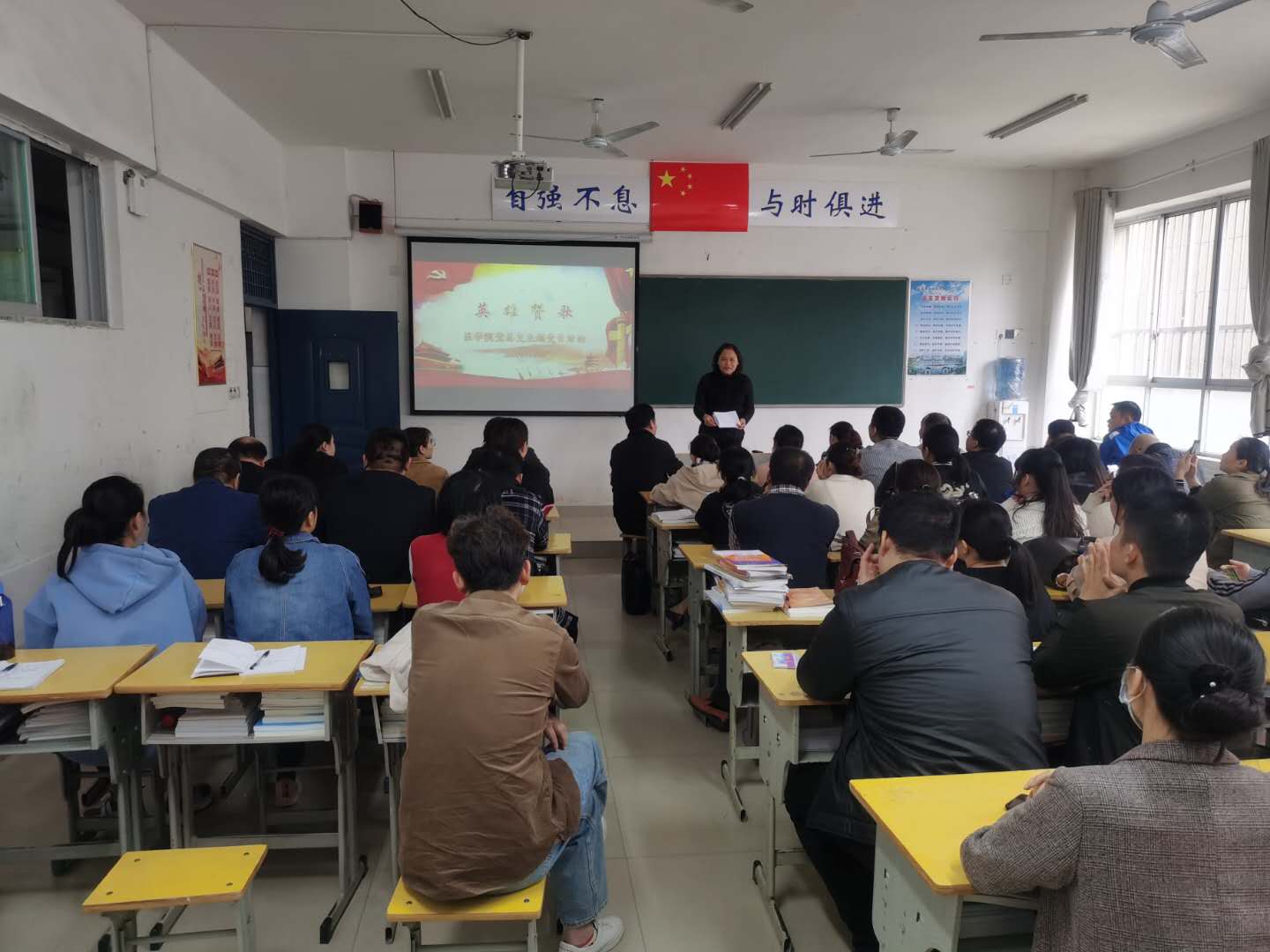 党总支书记舒文同志以《英雄赞歌》为题,向全体教工上了一堂生动的党课。舒文同志讲到:70年前,为了保卫和平,反抗侵略,中国党和政府毅然作出了抗美援朝、保家卫国的历史性决策,英雄的中国人民志愿军高举正义的旗帜,同朝鲜人民和军队一起,舍生忘死、浴血奋战,赢得了抗美援朝战争的伟大胜利。抗美援朝战争锻造形成的抗美援朝精神,是弥足珍贵的精神财富,必将激励中国人民和中华民族克服一切艰难险阻、战胜一切强大敌人。
