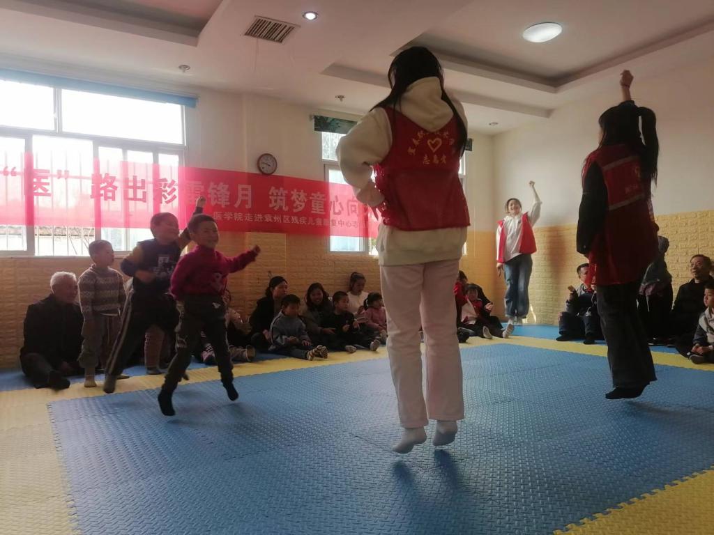 为认真贯彻落实习近平总书记对深入开展学雷锋活动的重要指示精神,3月7日,医学院学生工作党支部书记孙智清带领院学生会及社团志愿者来到袁州区残疾儿童康复中心开展 “‘医’路出彩筑梦童心”志愿服务活动。